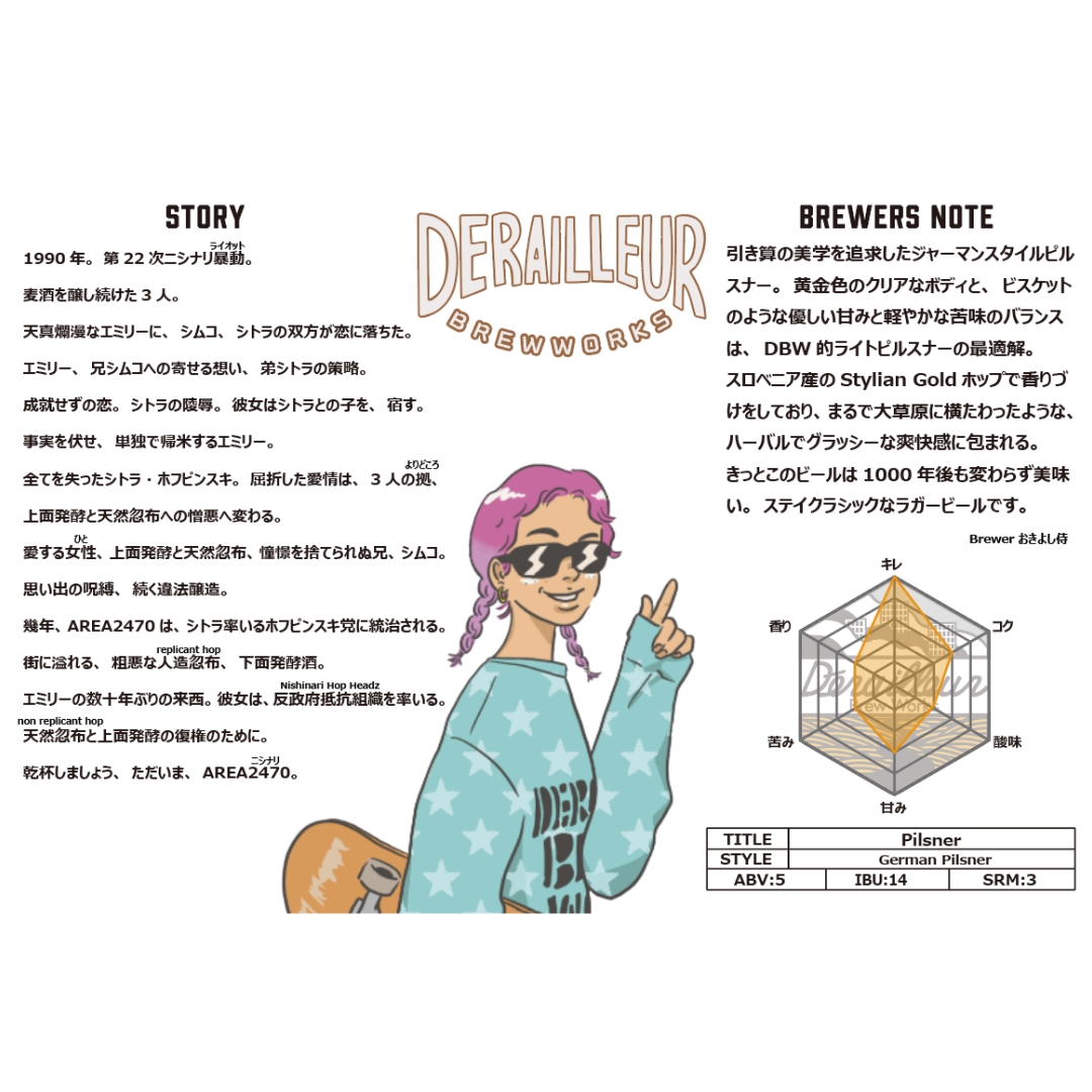 黄金色のライトボディと、ビスケットのような優しい甘みと軽やかな苦味のバランスは、DBW的ライトピルスナーの最適解。